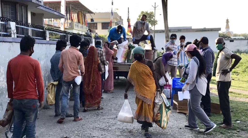 Mindrolling International dostarcza zestawy żywności zawierające ryż, mąkę, dal, olej kuchenny, przyprawy, proteinę sojową, herbatę, sól, cukier, detergenty i środki czyszczące dla tych, którzy utracili środki utrzymania i znajdują się w trudnej sytuacji.