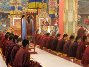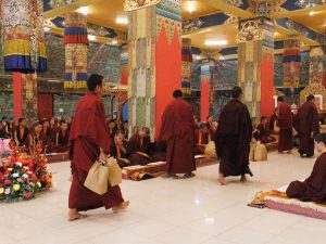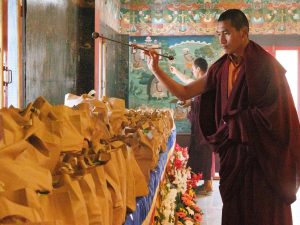 Trzeciego dnia Losaru w roku Ognistego Konia 2026 sangha Mindrolling zgromadziła się, aby złożyć obfite ofiarowanie ganaczakry (uczty ofiarnej), upamiętniając rocznicę parinirwany Kjabdzie Minling Trićhena. Zgromadzeniu przewodniczył Minling Dungse Rinpocze, a wśród obecnych byli Minling Dzietsün Rinpocze, Minling Dzietsün Khandro Rinpocze, Minling Dzietsün Dećhen Paldrön, Sangjum Kuśhog, Czcigodny Khentrul Marpa Rinpocze oraz inni tulku, khenpo i mnisi linii Mindrolling, a także mniszki z Samten Tse i członkowie międzynarodowej sanghi Mindrolling. Wielu innych członków sanghi, którzy nie mogli uczestniczyć osobiście, dołączyło do praktyki na żywo za pośrednictwem transmisji internetowej. Całe zgromadzenie zjednoczyło się w głębokim oddaniu, aby wspólnie praktykować, składając ofiarę ganaczakry.