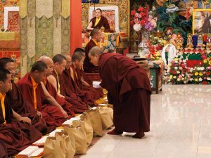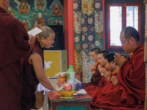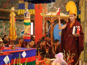 W tym pomyślnym dniu, gdy cała sangha Mindrolling była zgromadzona, a Kjabdzie Minling Dungse Rinpocze zasiadł na tronie Mindrolling, wszyscy głęboko odczuwali błogosławieństwo linii przekazu przeszłości, teraźniejszości i przyszłości. Podobnie jak wszyscy mistrzowie linii Mindrolling, którzy przyszli przed nimi, niechaj Dungse Rinpocze i Dzietsün Rinpocze kontynuują wznoszenie wspaniałego zwycięskiego sztandaru Dharmy dla przyszłych pokoleń.